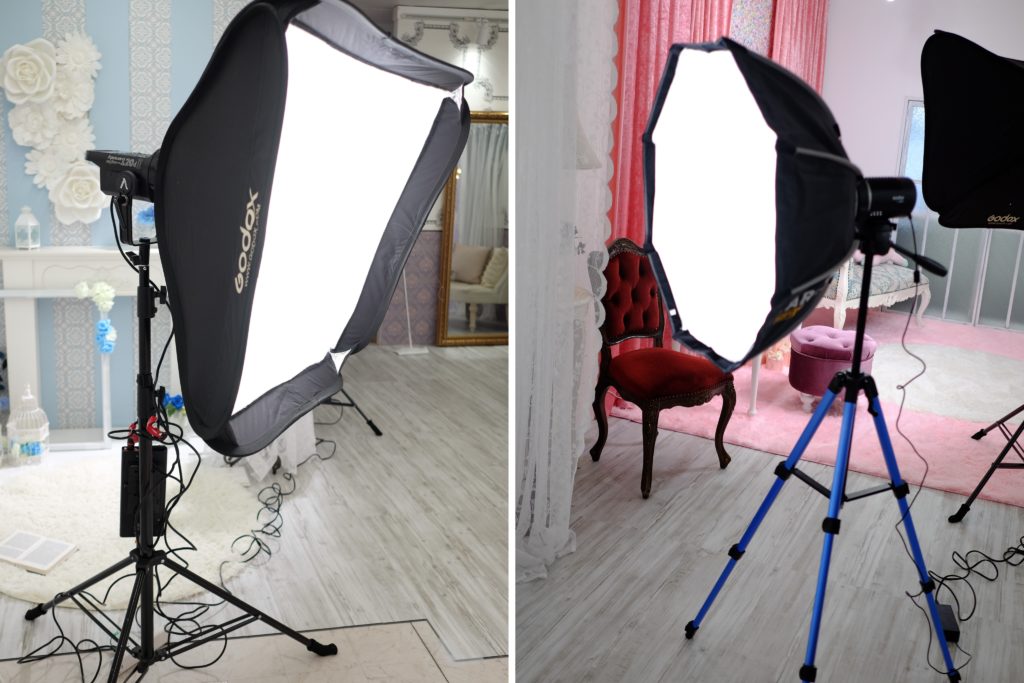 自然光による撮影が難しい状況のため、スタジオ室内の照明・スタジオ常設のLEDライト、お客様のストロボ等にて撮影をお願いする環境となります。